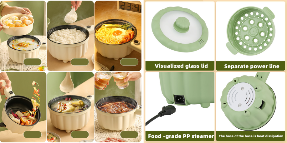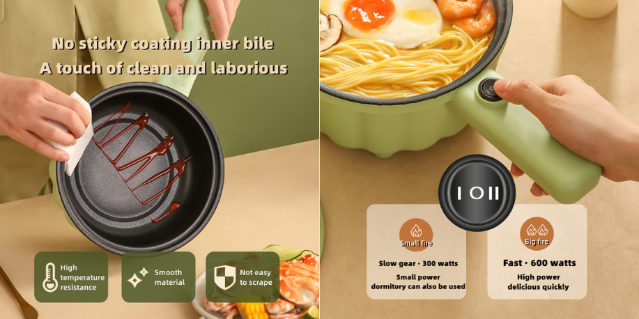 JAMAY 1000W กระทะไฟฟ้าอเนกประสงค์ที่ถูกออกแบบมาให้ตอบสนองทุกความต้องการในการทำอาหาร ไม่ว่าคุณจะต้องการทำซุปอุ่น ๆ นึ่งผัก ทอดไข่ หรือแม้กระทั่งทำอาหารทานเล่น กระทะไฟฟ้านี้สามารถทำได้ทั้งหมดในหม้อใบเดียว ความสามารถในการทำอาหารหลากหลายประเภททำให้คุณไม่ต้องเสียเวลาเปลี่ยนอุปกรณ์ครัวหลายชิ้น และยังช่วยประหยัดพื้นที่ในครัวอีกด้วย